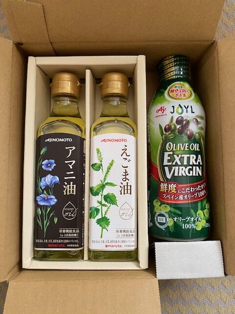 今回は200株保有でしたので、3,000円相当の自社商品である食用油が送られてきました。