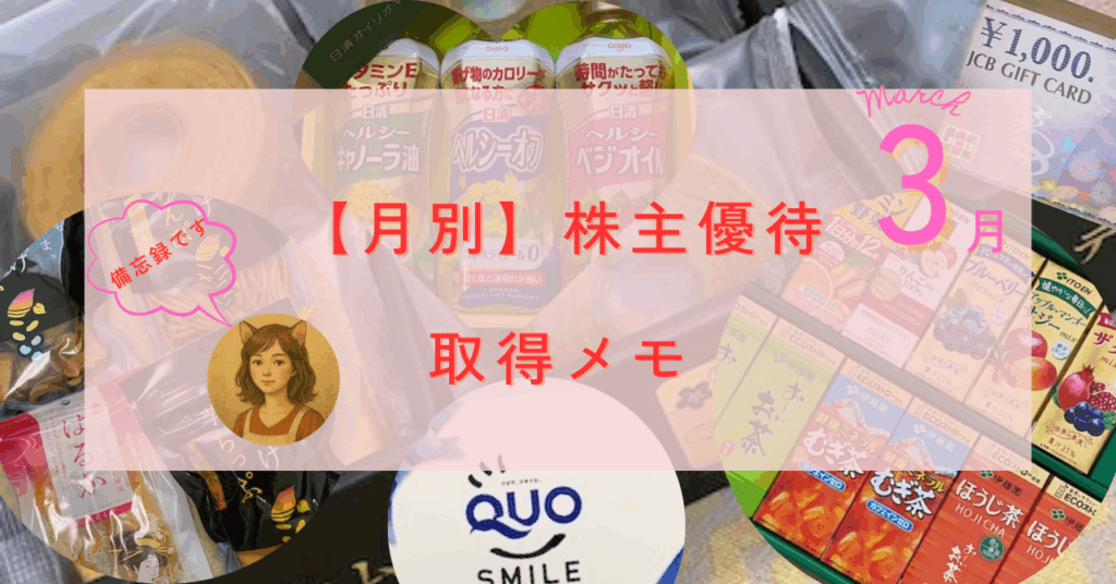 今回優待での、みーこママの取得に関する情報をまとめました。